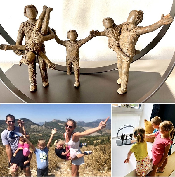 Pour la réalisation d'une sculpture personnalisée, mariant argile et métal, Marie-Pierre Terlinden est à l'écoute de vos souhaits et idées. A partir d'une ou plusieurs photos, elle réalisera une œuvre unique qui représentera au mieux l'histoire que vous souhaitez partager.